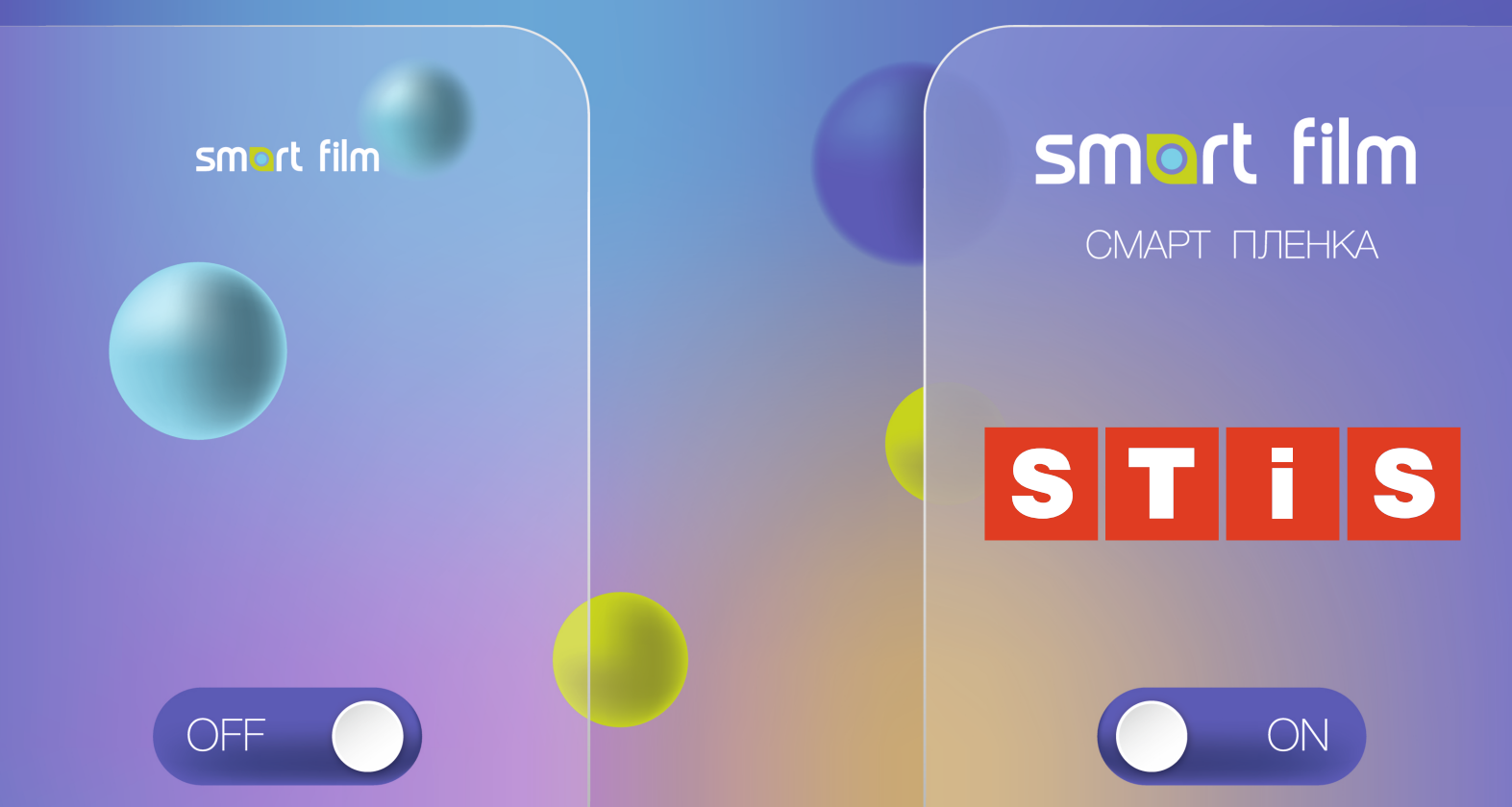 Плёнка с переменной прозрачностью – это полимерная плёнка, которая может изменять свою прозрачность под воздействием электрического тока. Плёнка может менять своё состояние из полностью непрозрачного до прозрачного. Она имеет клеевой слой и может наносится на любое имеющееся стекло или стеклопакет. Стекло с нанесённой смарт плёнкой Смарт плёнка SMART FILM называется СМАРТ СТЕКЛО. Плёнка поставляется в рулонах шириной 1,5 метра и длиной 30 метров.